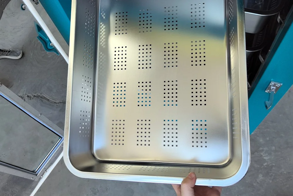 Tangki bagian dalam dan baki didesain dengan baja tahan karat, bersih dan higienis.